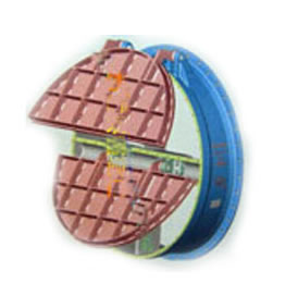 拍門適用于給排水及污水處置工程的各種管道和水渠道作溢流、止回之用,亦可用作各種豎井井蓋,它僅用于單向水流的圓形出水口構(gòu)造特性,拍門具有流道正向單向開啟和反向關(guān)閉的作用。配重式拍門借助于配重的均衡作用,在水流的作用下使門頁自動開啟或關(guān)閉,或稍加外力作用使門頁開啟或關(guān)閉;浮箱式拍門則應(yīng)用門頁在水中的浮力,在水流的作用下使門頁開啟或關(guān)閉。